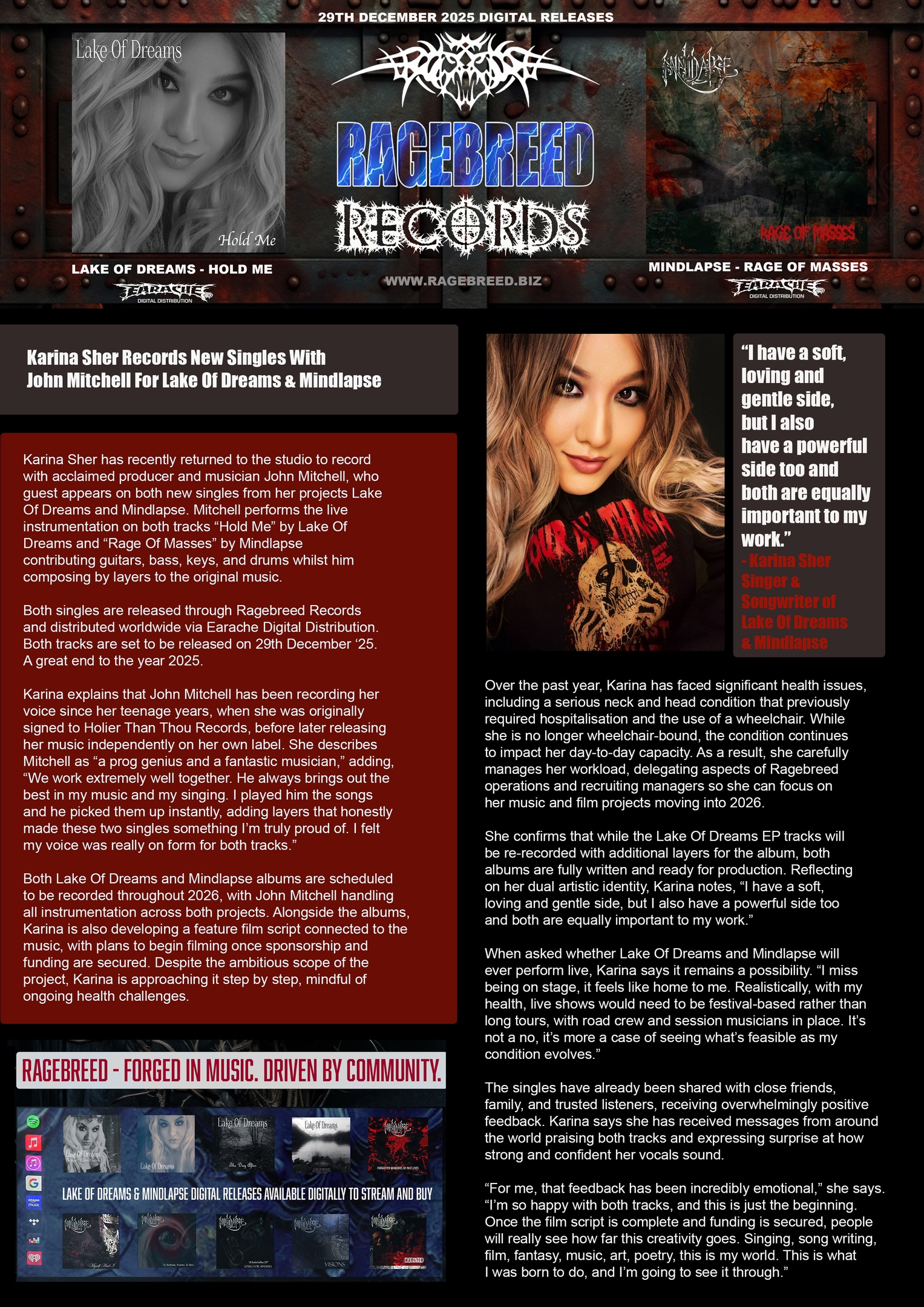 With a self titled EP and 4 digital singles currently out, Lake Of Dreams are signed to Ragebreed Records with "Hold Me" having worldwide distribution by Earache Digital Distribution.