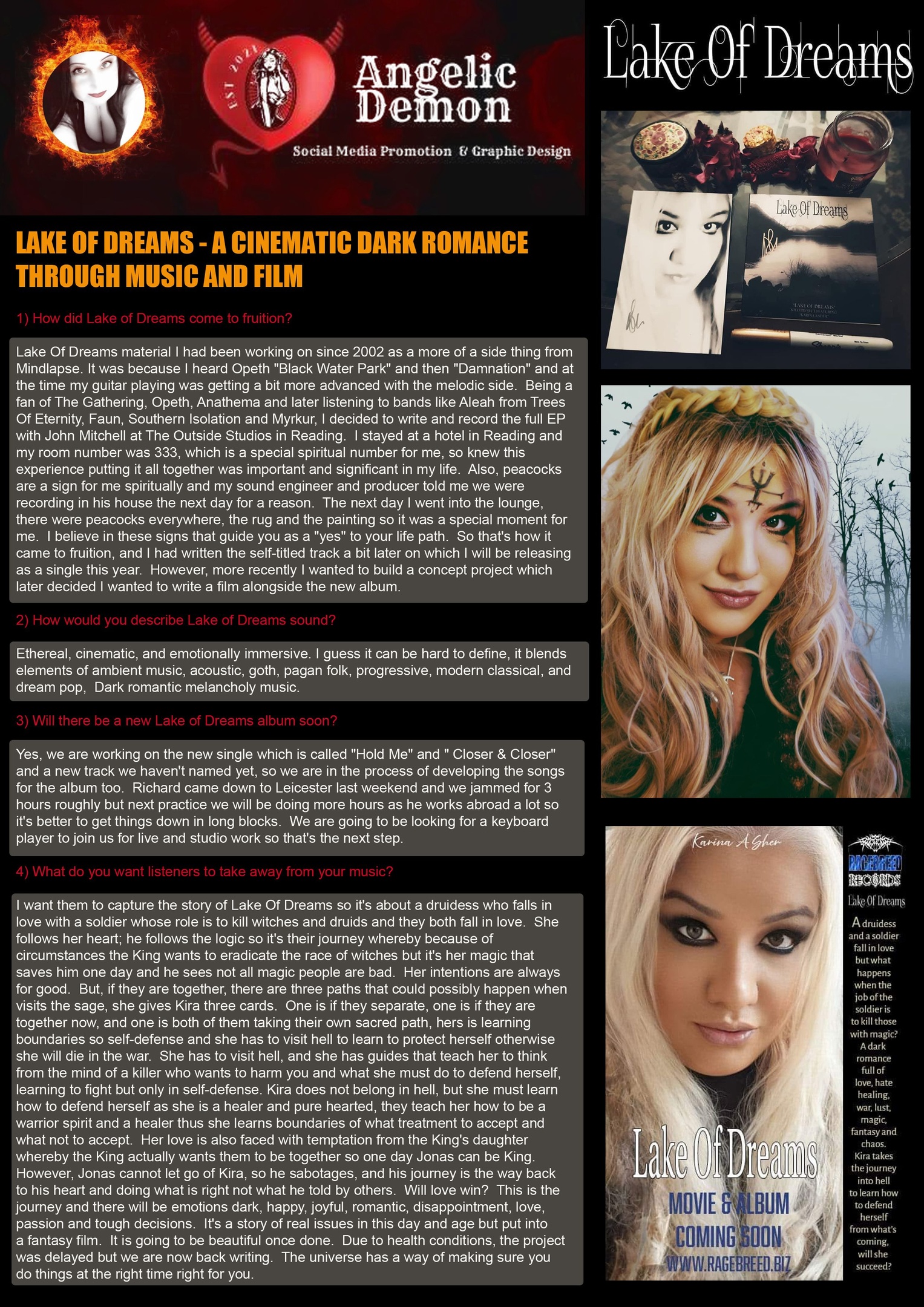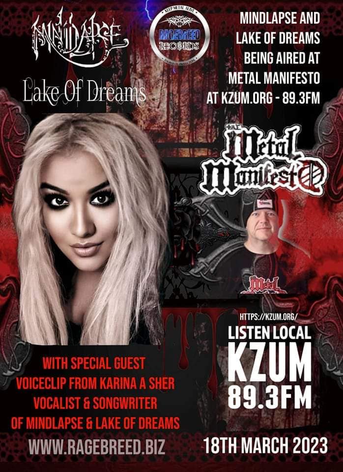 "Please be informed that earlier this year, Richard Chappell was part of the band. Unfortunately, he is currently dealing with a hand condition that prevents him from performing on stage or in the studio with Lake Of Dreams. His health is our top priority. As a result, John Mitchell has stepped in to play the instruments and will be collaborating with me on the recording of the singles and album. We anticipate that the material will be fully film-ready for both Lake Of Dreams and Mindlapse's singles and albums by the end of the year. All upcoming releases will be distributed through Ragebreed Records and Earache Digital Distribution." - Karina Sher